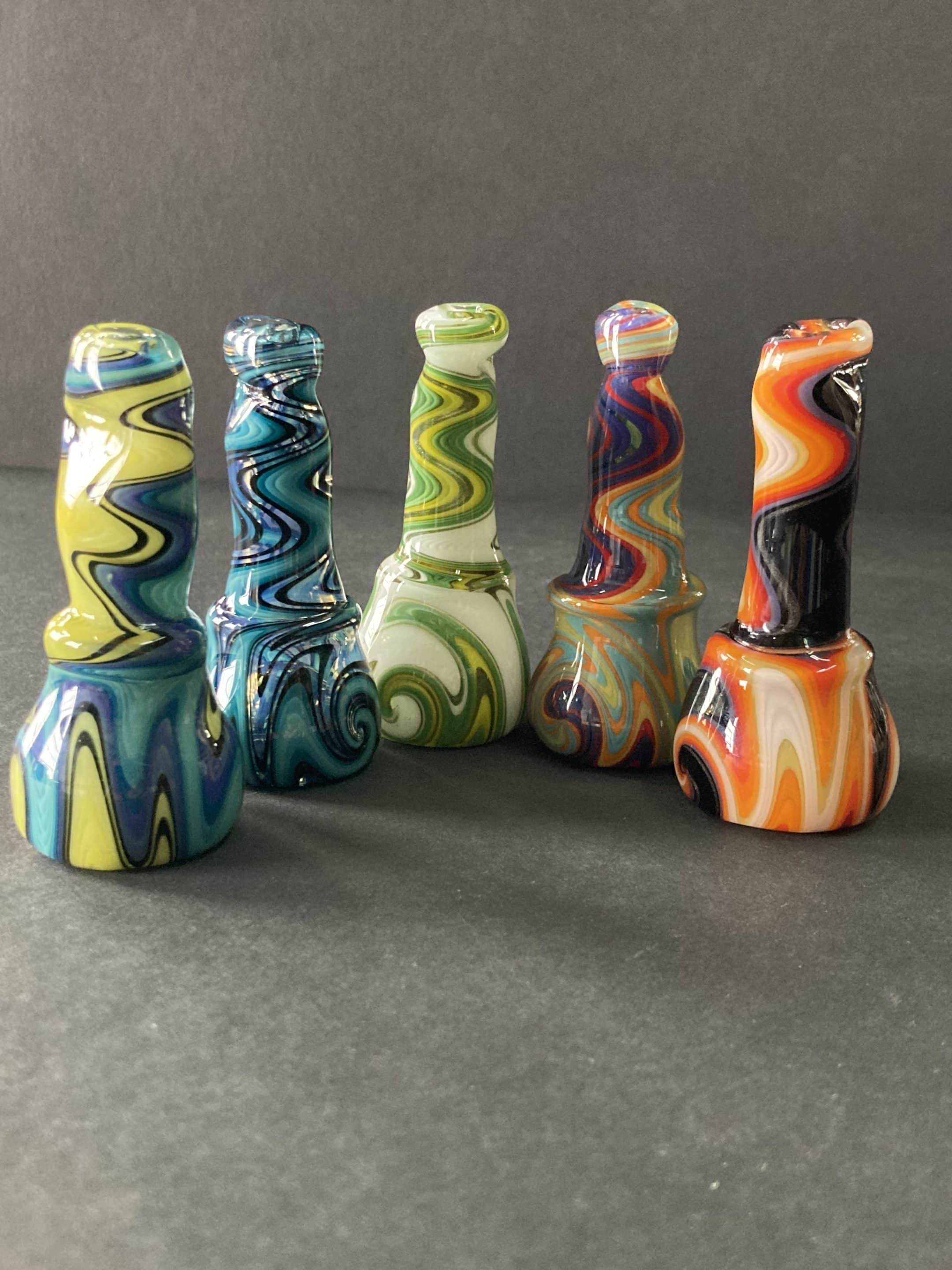 Old school stand up chillum with a pushed bowl. Two piece linework design with teeth crimp mouth piece. Made by Aaron