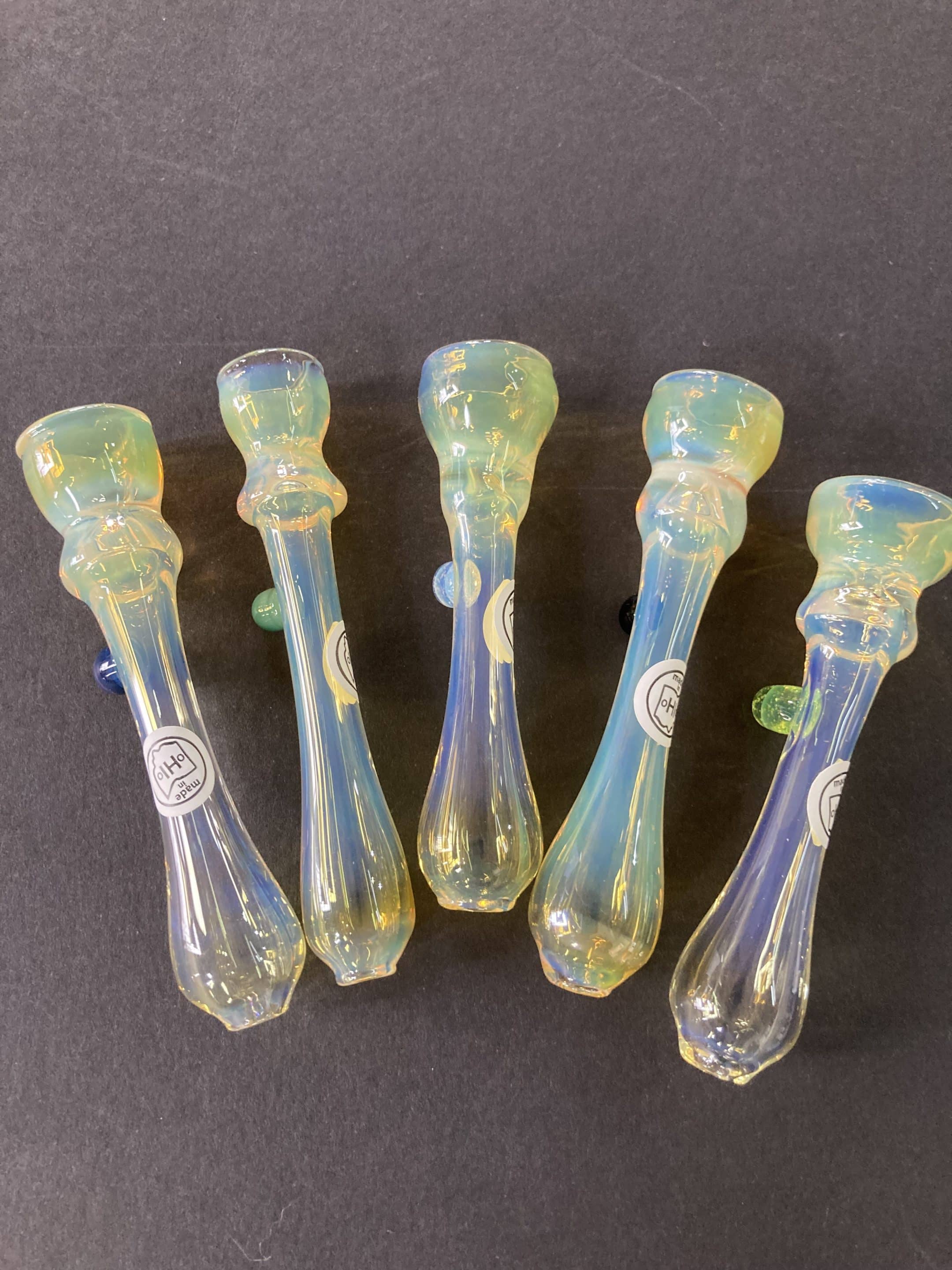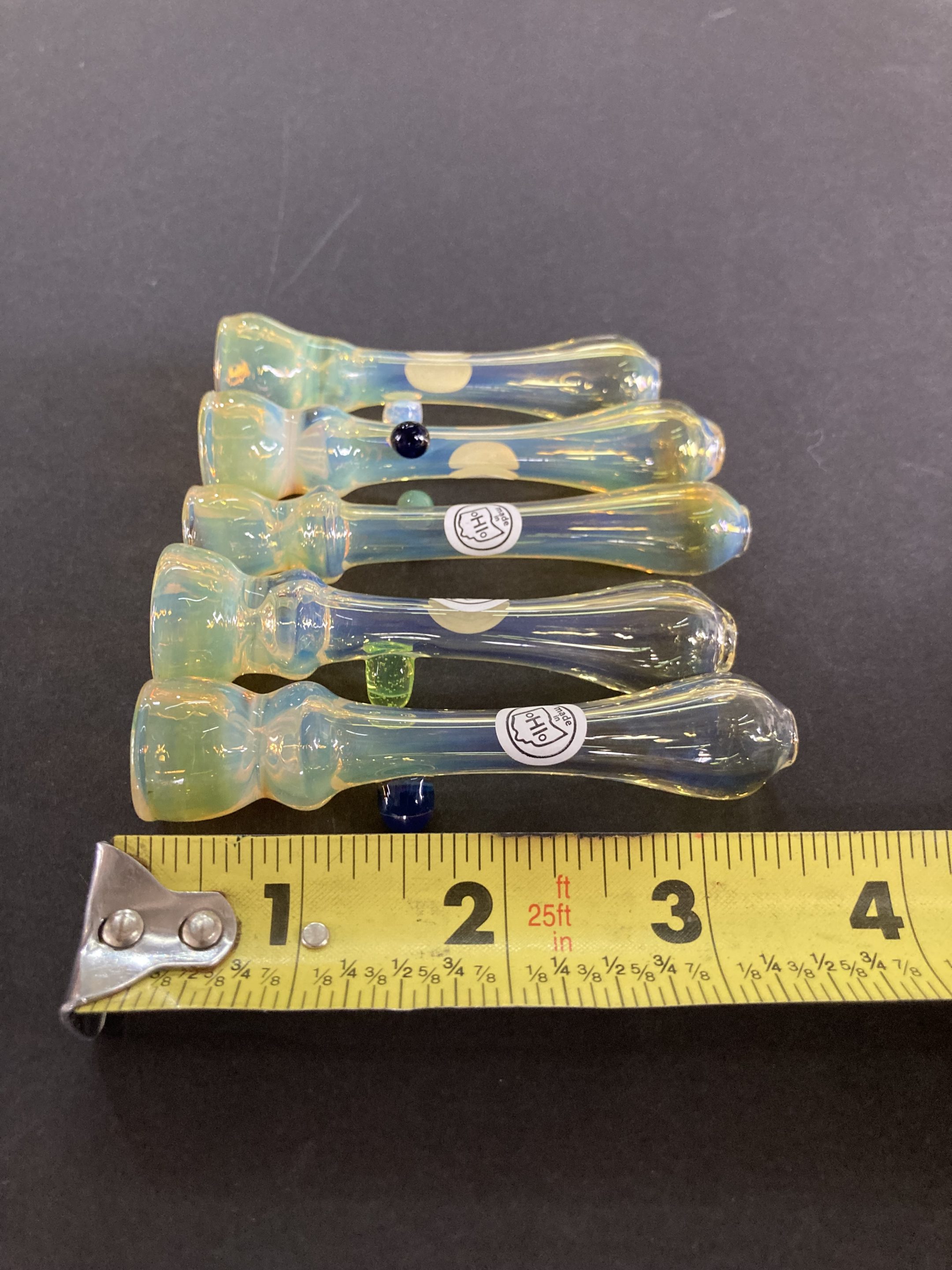 Pocket-sized surface fumed silver chillums with a color dot. Made by @darkwingdorkglass