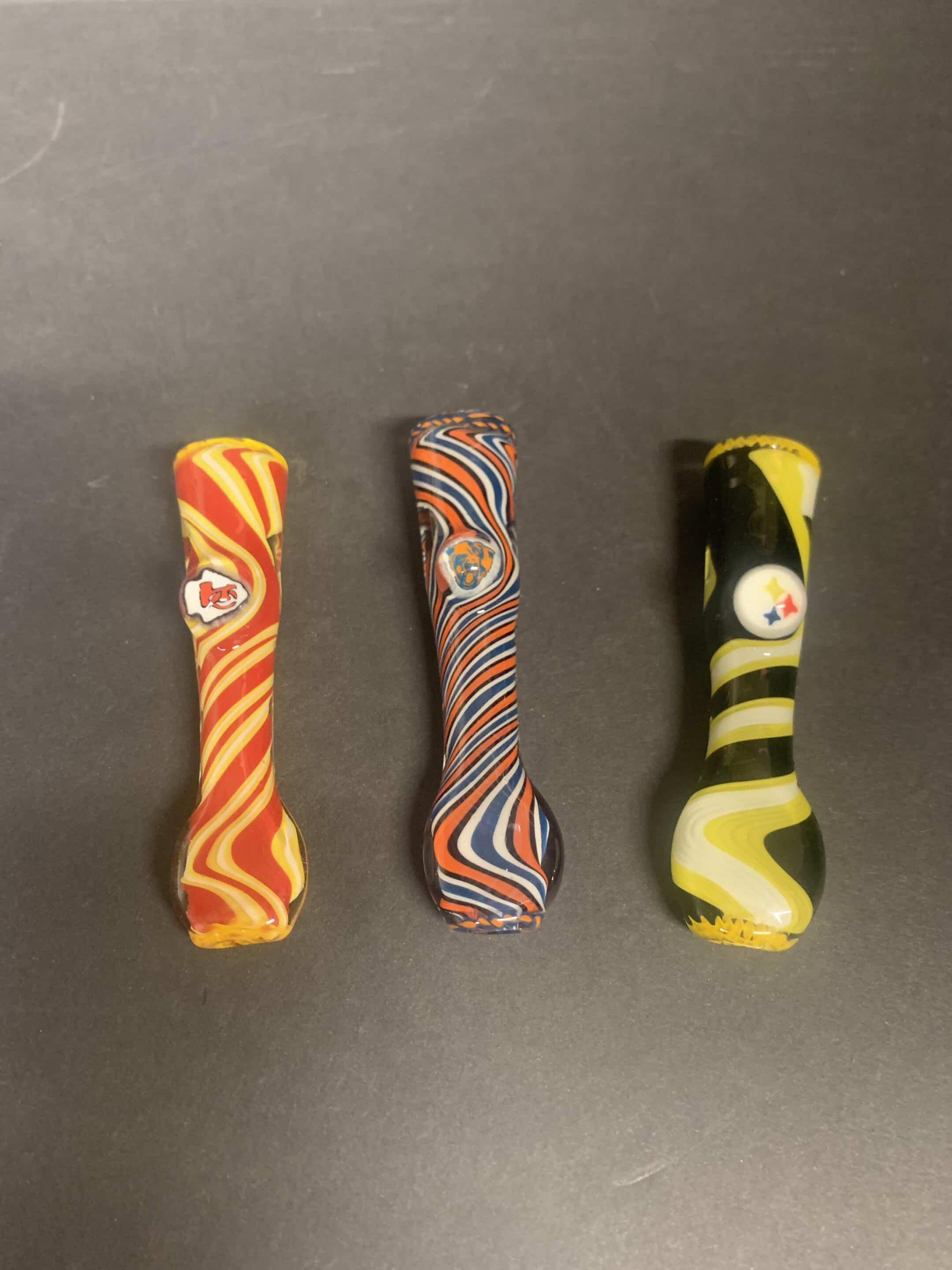 Each chillum is made in team colors w/ their milli, the pipes have the team milli & an NFL logo milli. From Willstar