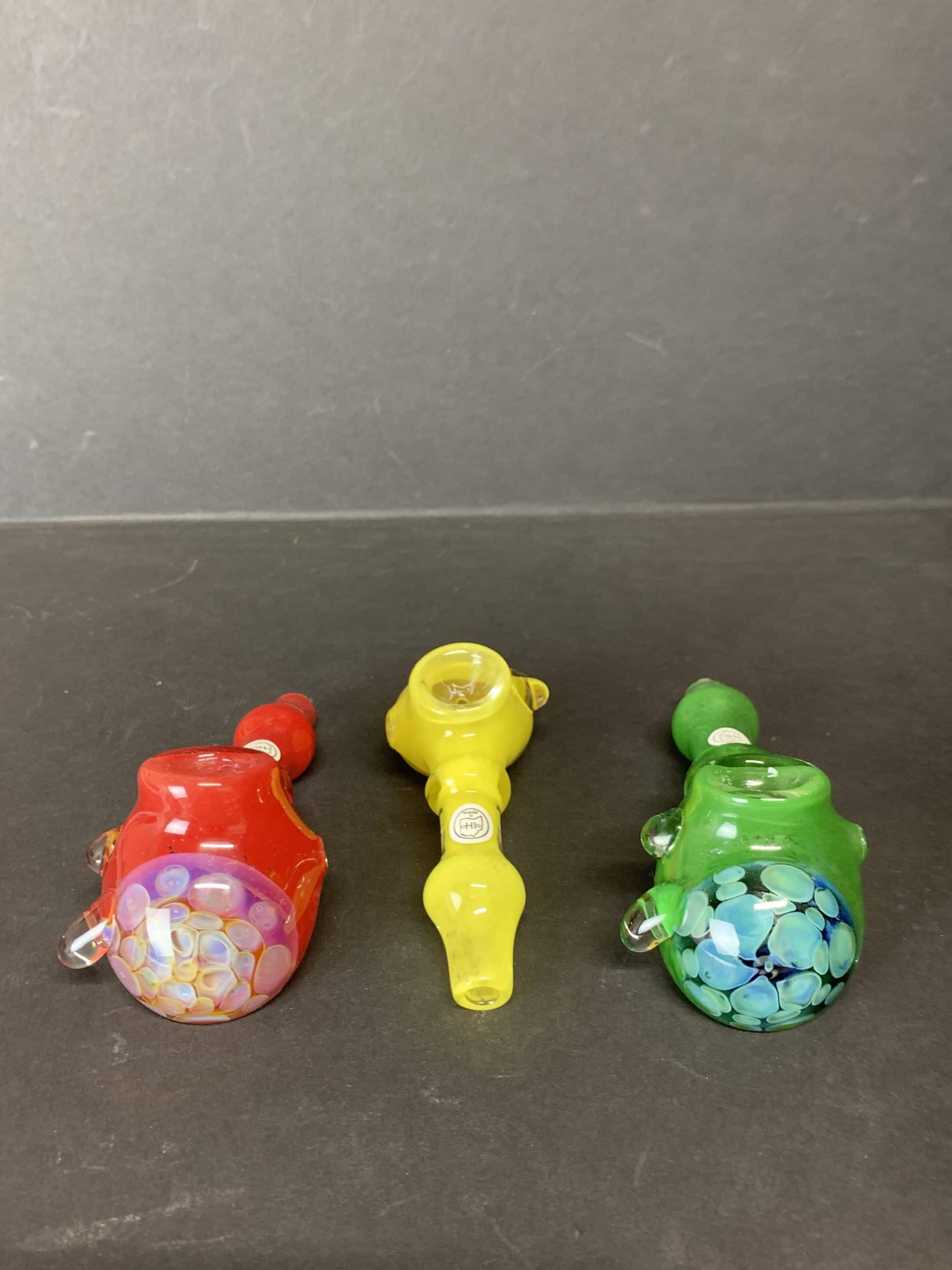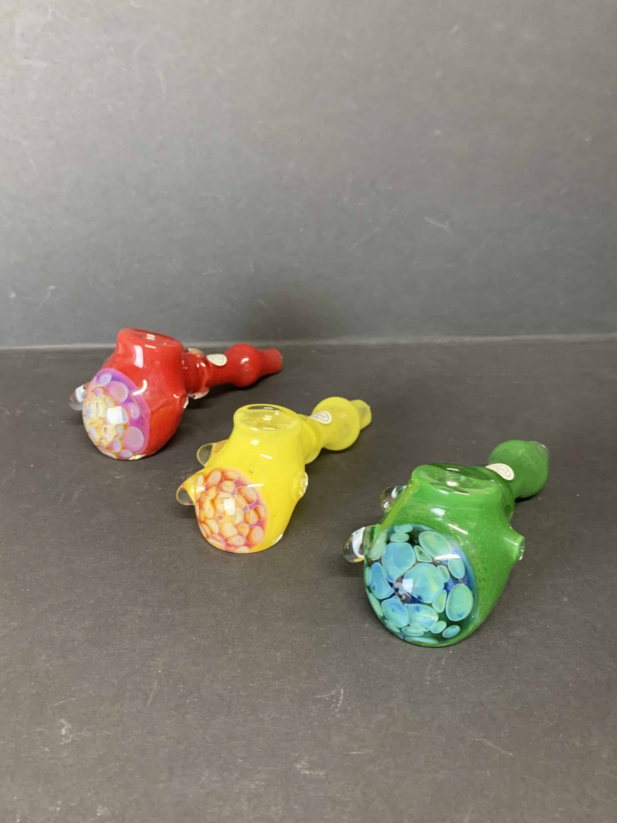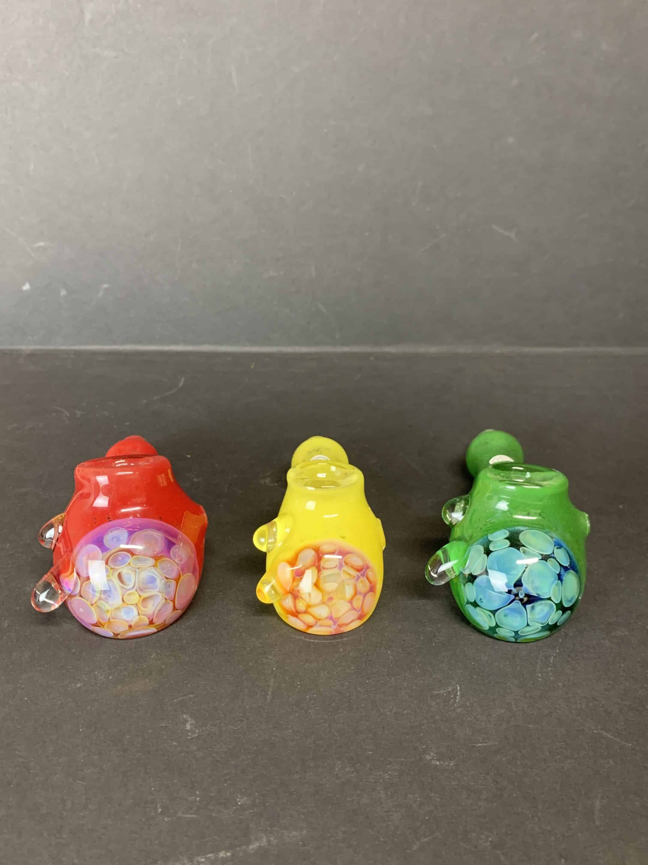 Brightly colored frit hammers with dazzling fumed honeycombs. From joshmo_glass