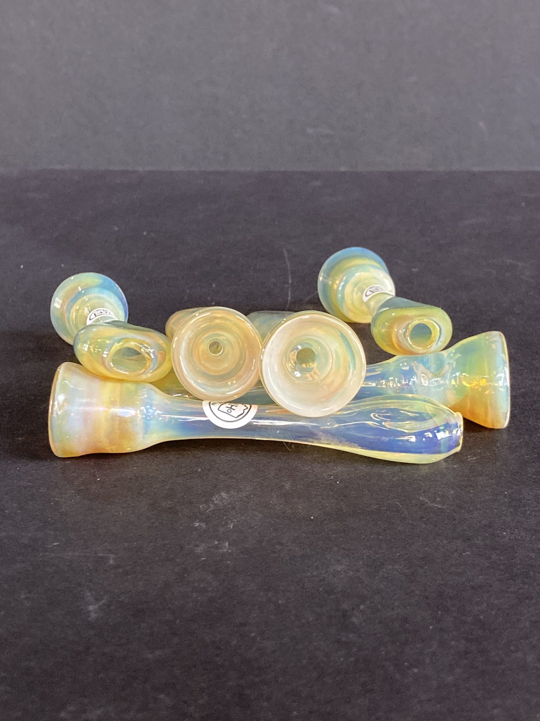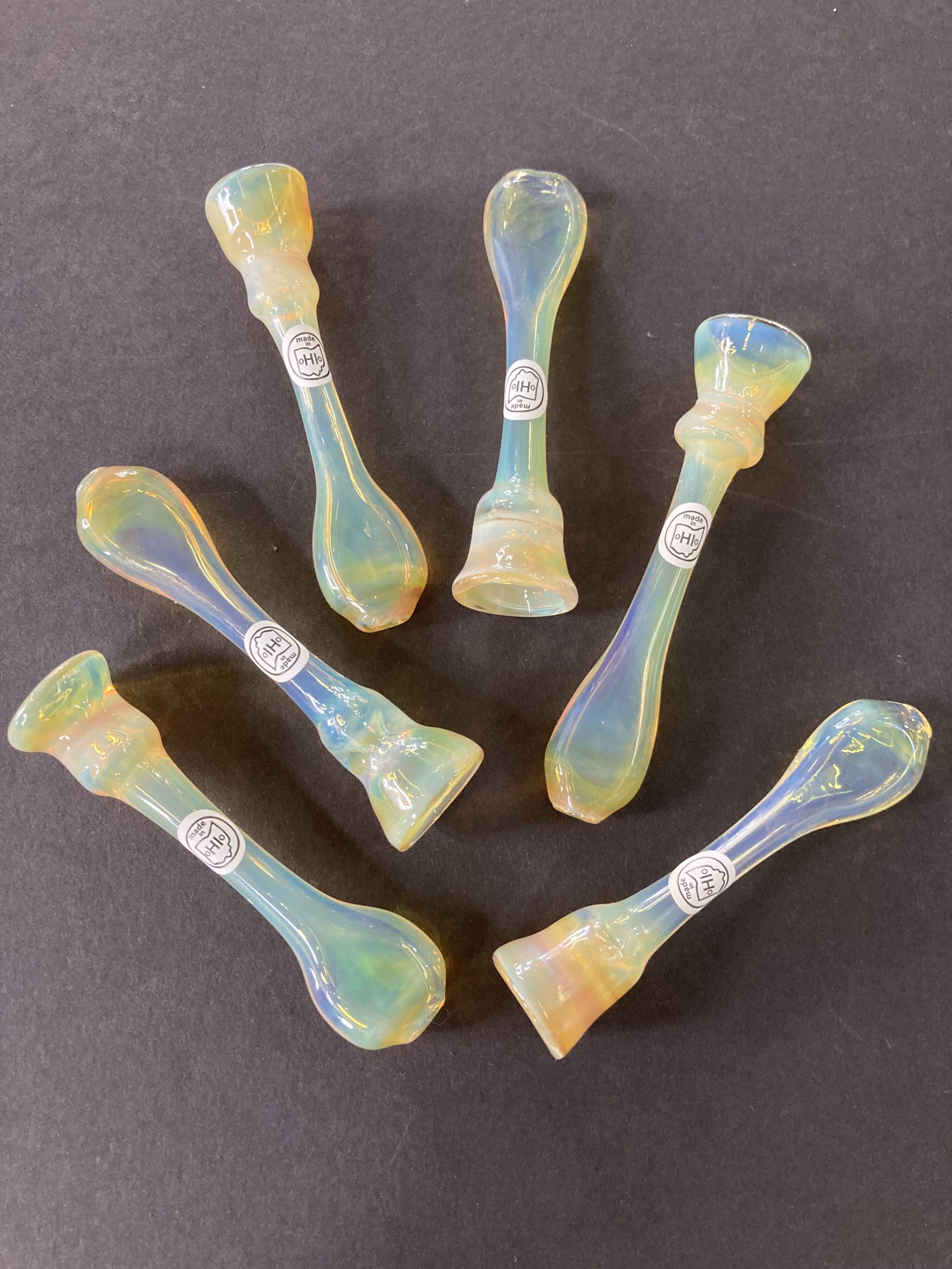 Pocket sized surface fumed silver chillum with a flat mouth piece. Made by @darkwingdorkglass