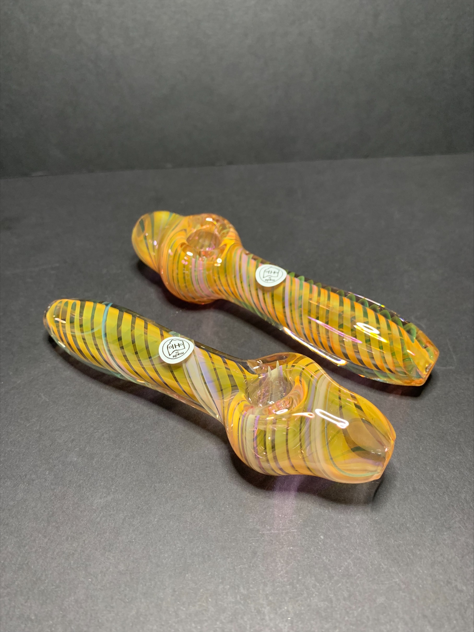 Thick inside out steamrollers with a silver n gold fume pattern.