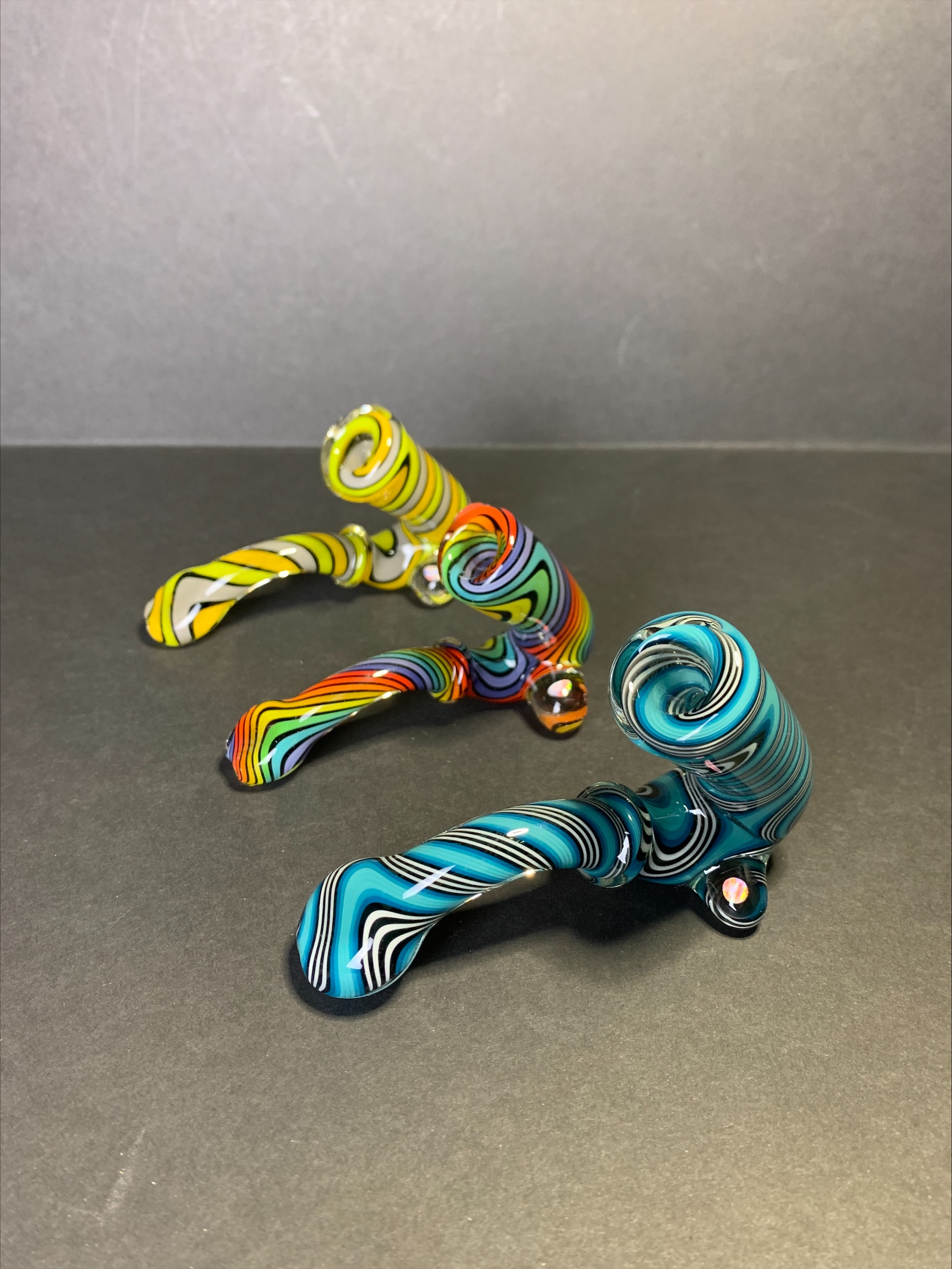 These stunning linework sherlocks are bright and colorful with an opal as a rest. From Tedrow